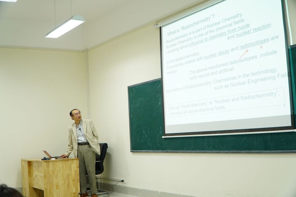 打合せの後には、鈴木副学長がHUSTの化学分野の学生向けに、核化学・放射化学に関する講演を行いました。